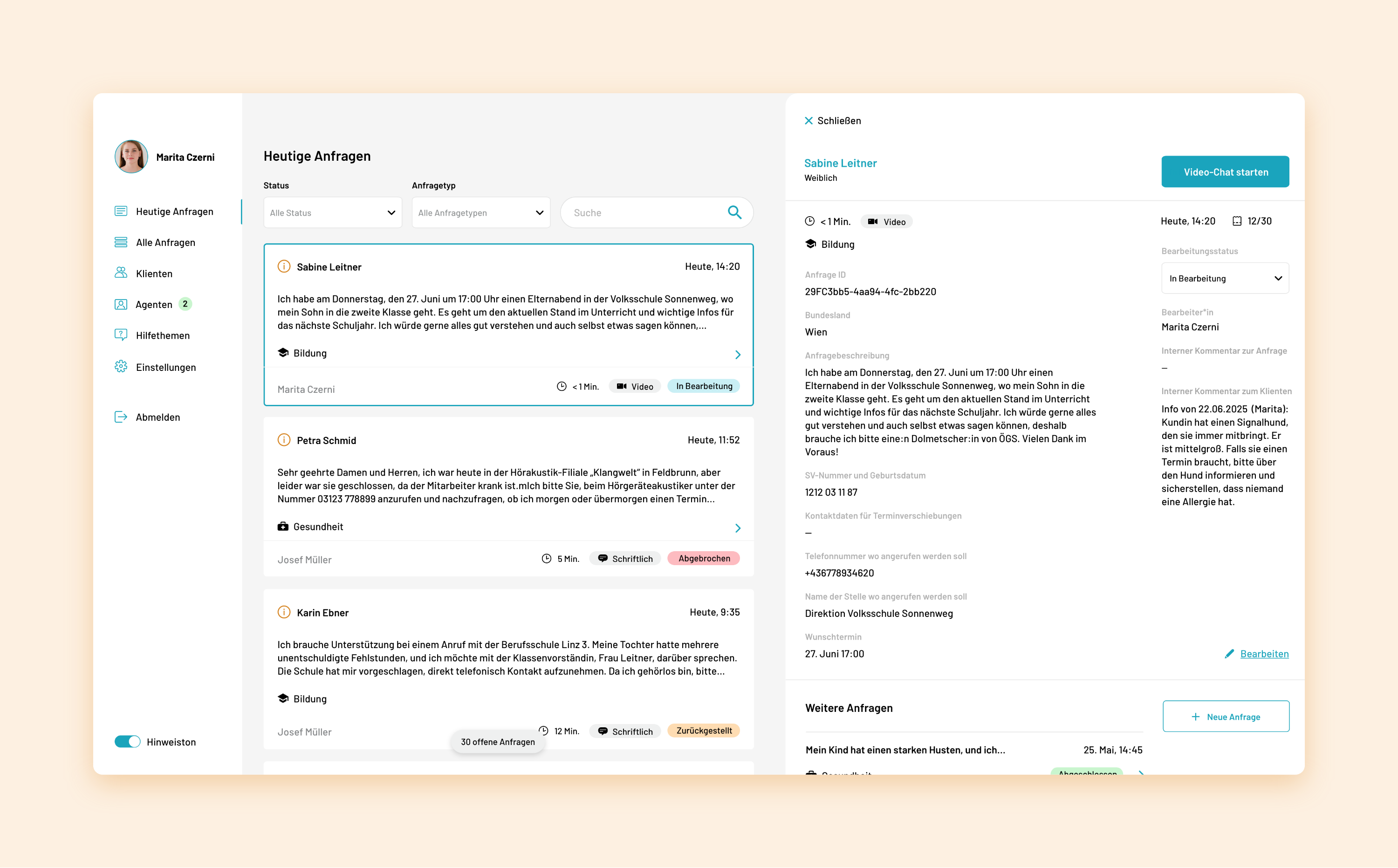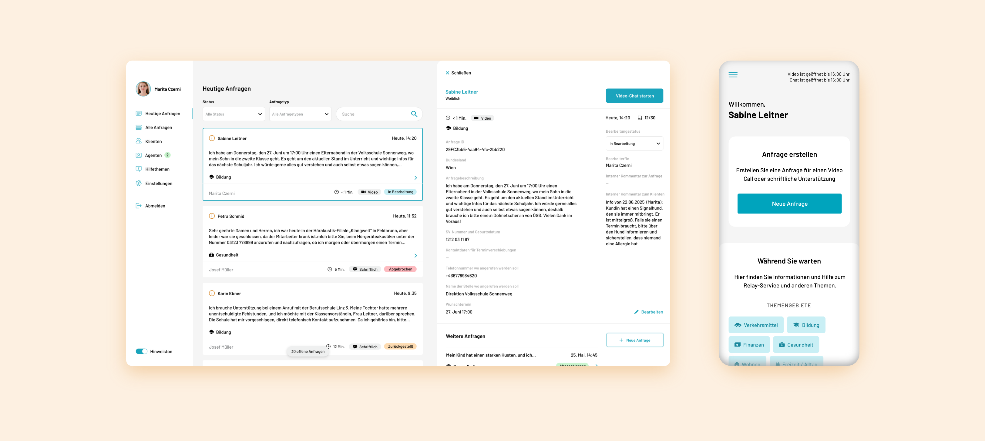 The Relay Service Center was developed for ÖGS Barrierefrei. It allows deaf, hard of hearing and speech-impaired people to contact the ÖGS Service Team via video or text communication and make use of their interpreting services.